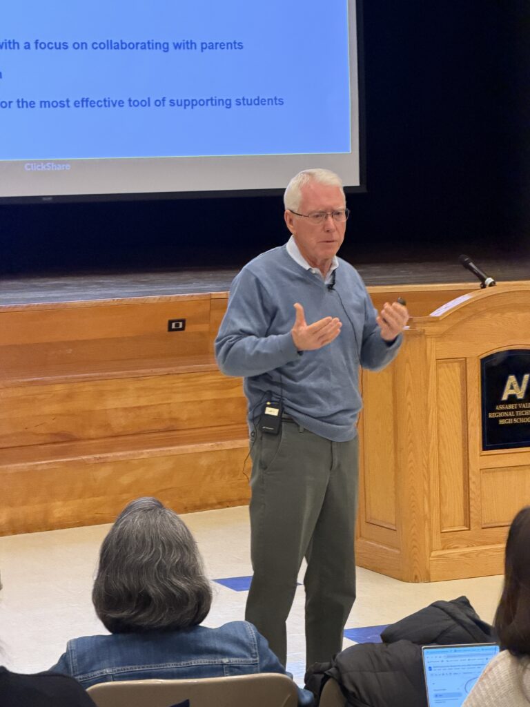 Jim McCauley, a licensed independent clinical social worker and co-founder and senior consultant of Riverside Community Care, presents during Massachusetts Partnerships for Youth’s seminar, “Best Practices for Student Re-Entry After Hospitalization.” (Photo Courtesy Massachusetts Partnerships for Youth)